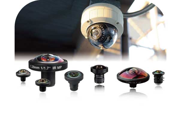 ● 超广角鱼眼镜头,角度范围180°~250,适用于全景安防监控